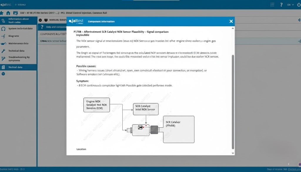 Sur un DAF XF Euro 6, le code défaut P170B peut provoquer une perte de puissance ou des passages de rapports difficiles. Avec Jaltest INFO Web, identifier et résoudre ce problème devient rapide et précis, même pour les techniciens moins expérimentés.