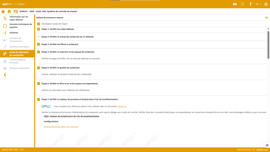 La première étape consiste à utiliser Jaltest OHW pour récupérer les codes d’erreur du bulldozer. Ces codes indiqueront si un problème est lié à la pompe hydraulique ou à un autre composant du système.