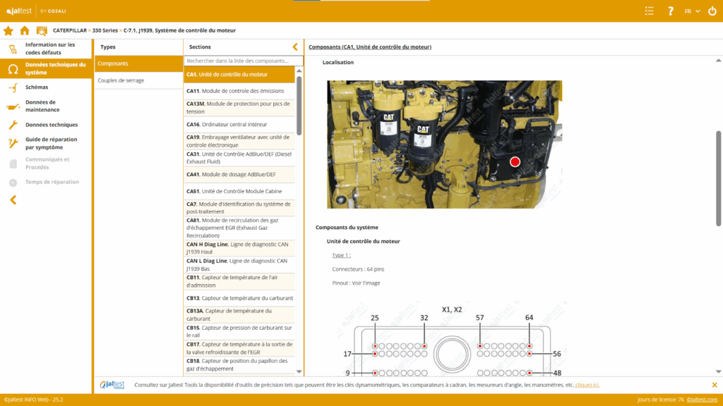 ➡️ Les schémas techniques Jaltest INFO Web facilitent la localisation des composants.
